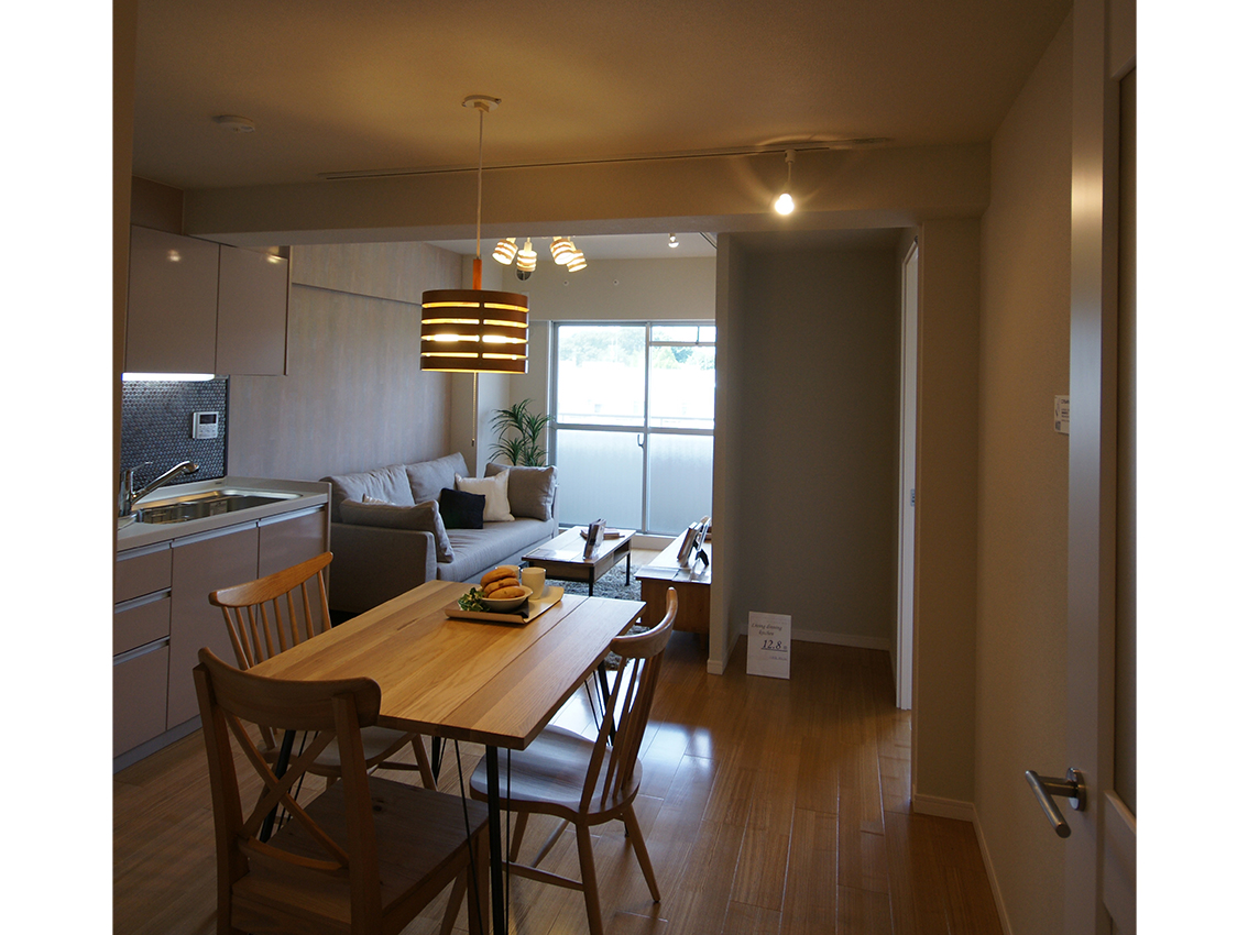 築32年のマンション1室の改修工事です。 南西のバルコニーに面した和室2部屋のうちひとつをLDKの一部としもうひとつを洋室としました。 この洋室と奥の部屋との建具は3枚引き戸なので、つながりのある明るい空間となりました。 所在地:東京都文京区根津 用途 :個人住宅(共同住宅の一室) 構造 :鉄筋コンクリート造 規模 :マンションの一室 57.35㎡ 竣工 :2014年6月